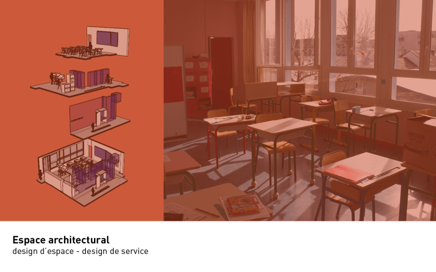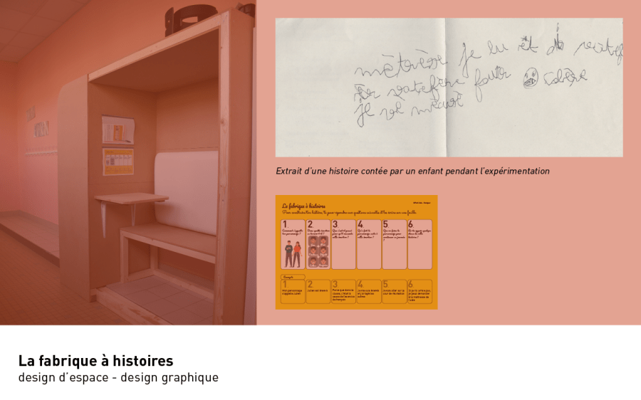 Face aux agitations empêchant certains enfants d’accéder à une classe ordinaire, l’association Marie Moreau m’a confié une étude intitulée «Le répit à l’école, une approche par le design» dont l’objectif est de soutenir l’apprentissage et les besoins des enfants ayant des troubles du comportement pour répondre à la problématique suivante :